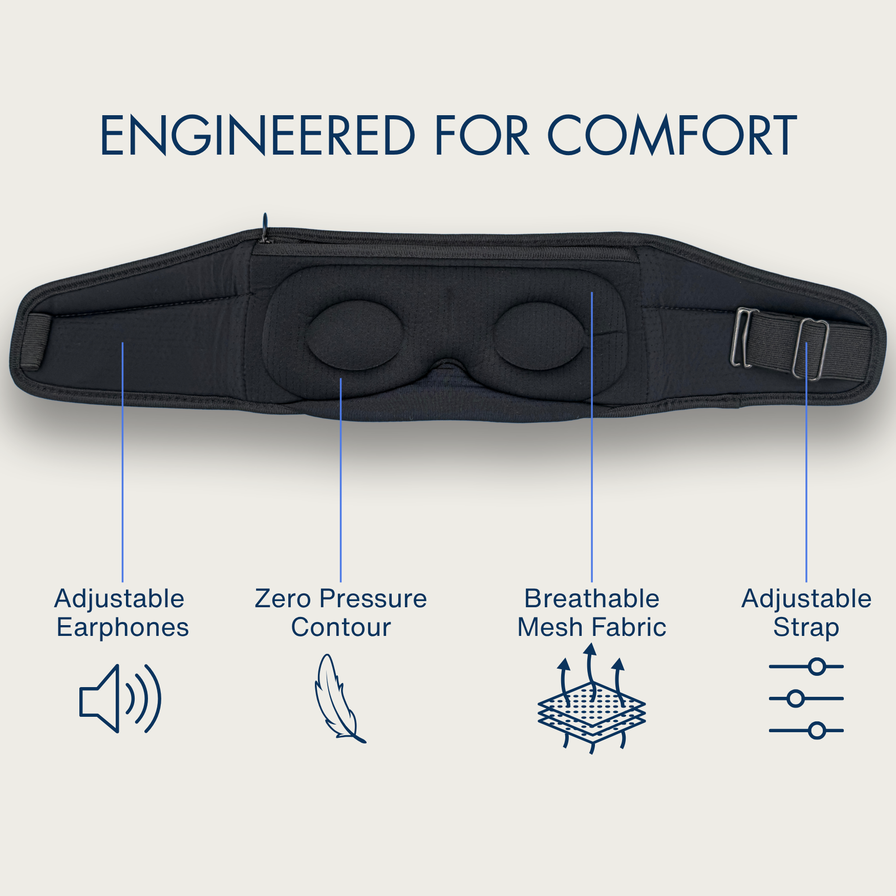 Yes — the Deep Sleep Mask is designed with safe, non-invasive sound levels and built-in auto-off timers (choose from 30 min, 1 hr, 2 hr, or 3 hr). The sound is played externally, through ultra-thin speakers inside the mask — not inside your ear canal — so there’s no direct pressure or risk to hearing.